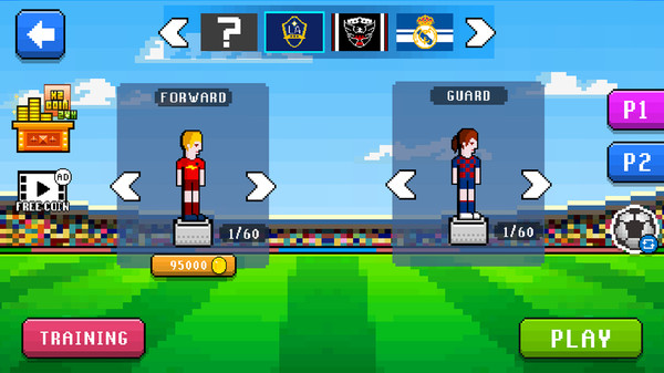 双人足球游戏画面采用了像素风格的设计,使得整个游戏看上去非常魔性,而且游戏玩法多样且简单,玩家游戏体验感更强,和你的好友展开一场精彩的比赛,看谁才是最厉害的哪一个,进攻对方并且阻挡他的进攻,玩家需要给每个球员分配位置,只要合理分配队员,就能玩得非常轻松,无论对手的实力再强,也能迅速调整姿态进行反击。