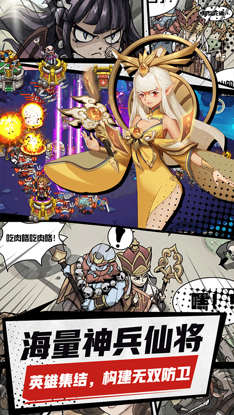 4、有完美的神魔养成体系,有精巧的卡牌养成系统,有百搭的炮塔搭配阵营,有炫酷的免费全屏技能;