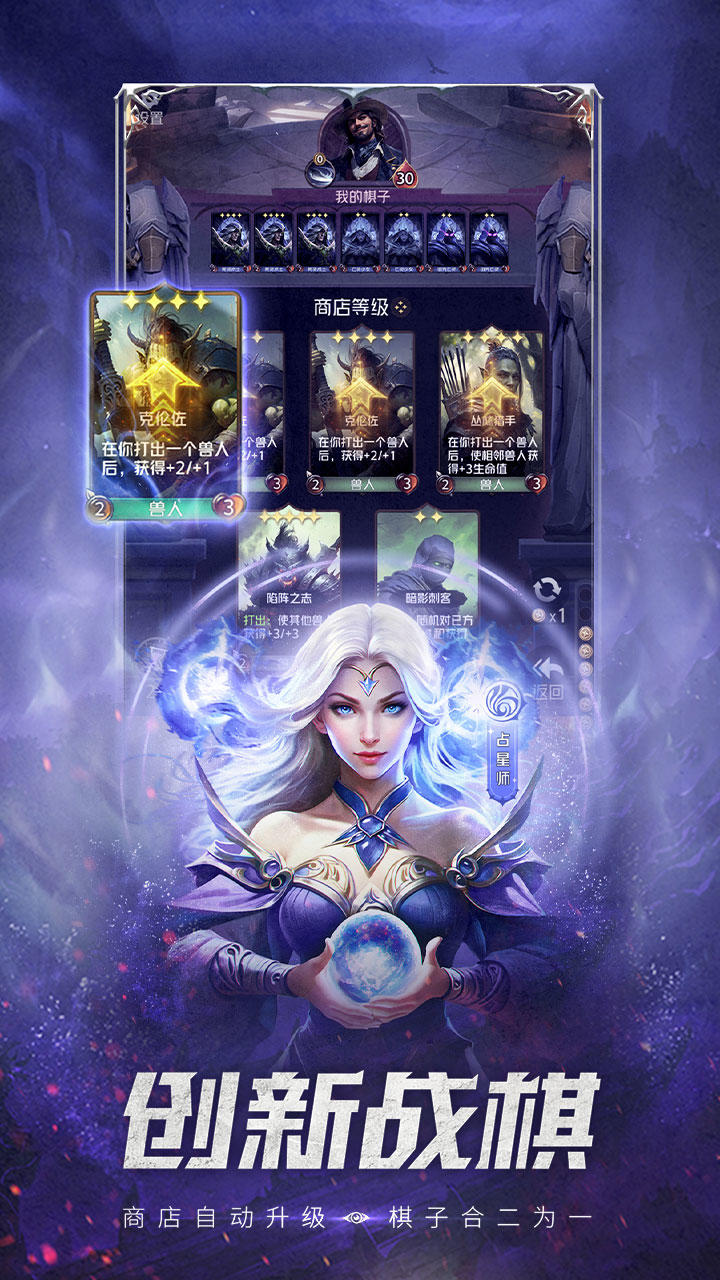 是一款比酒馆更上头的策略自走棋手游。在这里,你是一名操纵战场局势的策术师,使用各具特色的英雄卡牌和棋子进行对战。七大种族,七十多名英雄,六人成局,还有全新双人合作模式,战斗一触即发……选择强力的英雄,灵活变换阵容和站位,10 分钟一局畅快对战,在一场场对决中脱颖而出吧!