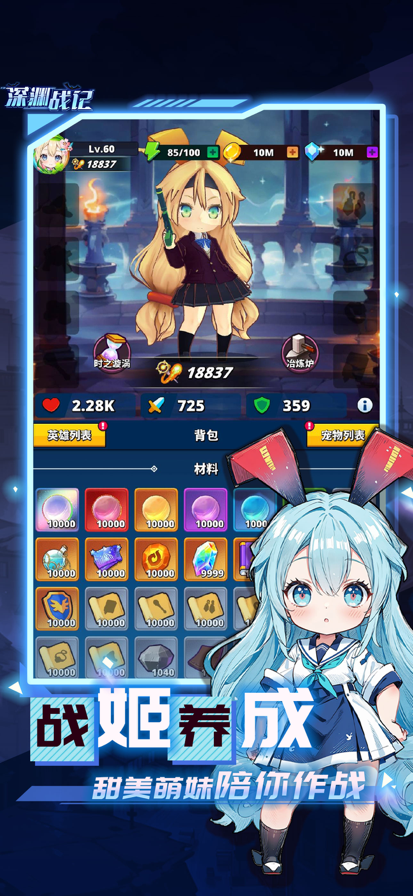 1. 深渊战记中有许多强大的角色,你可以自由地派遣他们去战斗并赢得胜利。