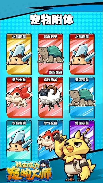 转生成为宠物大师是一款比较有趣的休闲对战游戏,这款游戏中有丰富的宠物角色,每一只宠物都很古灵精怪,而且还有高强的实力可给玩家带来帮助,之后可以给宠物搭配上武器、衣服、鞋子、头盔等等物品,提高宠物的各方面实力。