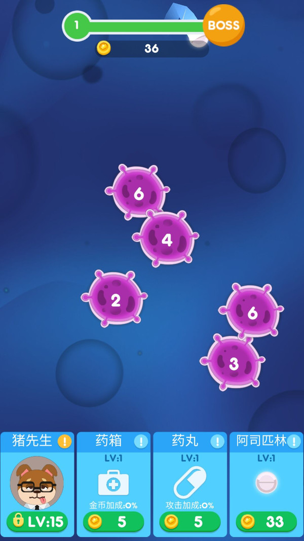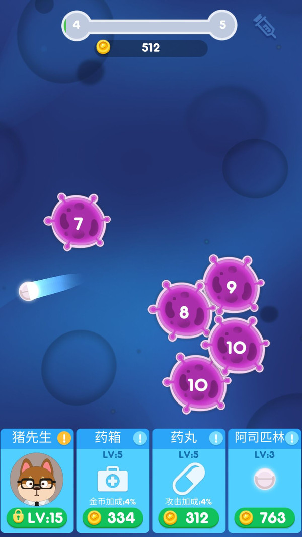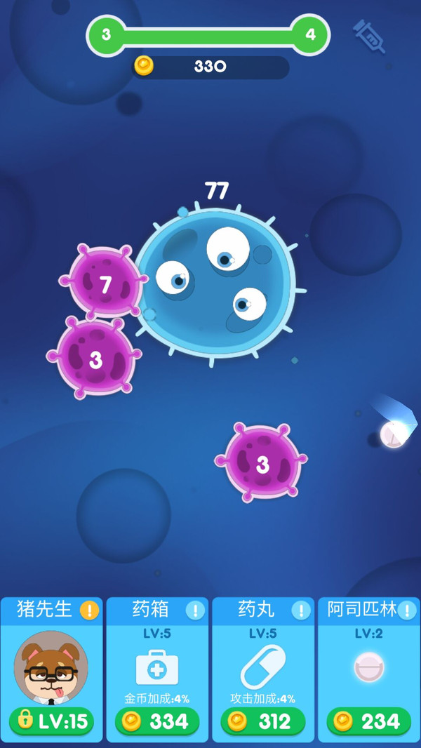 2、你可以使用各种有趣的治疗方法帮助消灭病毒,以此来完成关卡任务。