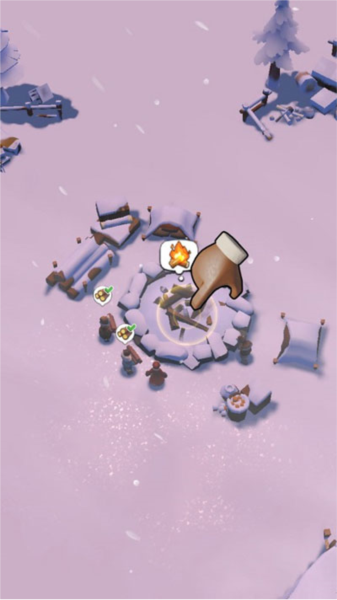部落里的青壮年会自动寻路并会将收集的木材带回到营地。根据图中所指,添加材火,即可完成第一步:抗寒取暖。