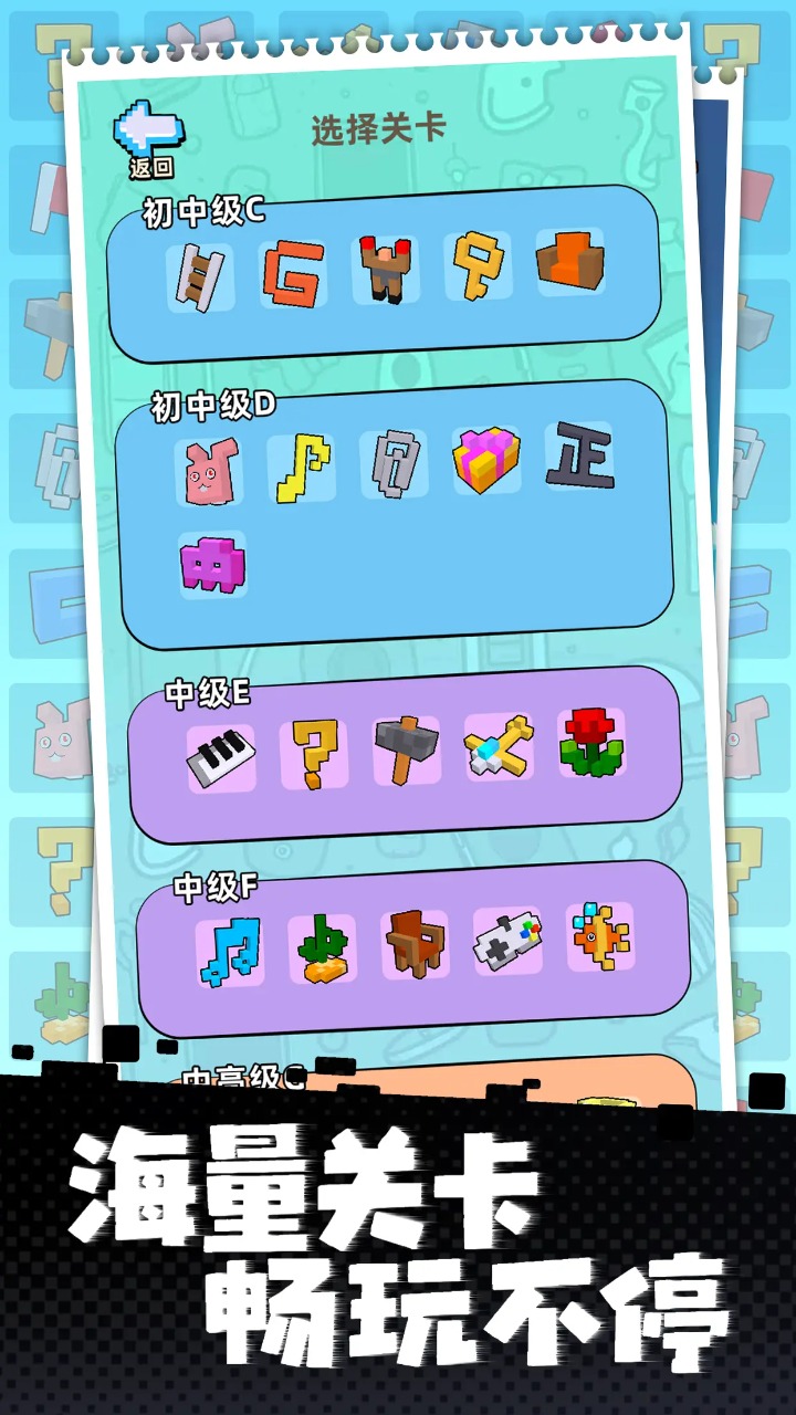 解锁图形玩法需要玩家根据每一关给出的图形,将对应的不需要的方块消除,最后成为一个图形。