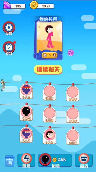 另外达成一定的任务还能解锁头衔,观看视频加速获得收益,因为火柴人的招募是需要金钱的,而升级之后的火柴人也能够带来更多的收益。