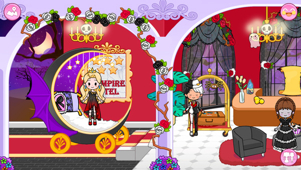 公主假期梦幻王国之旅最新版是一款全新的少女向休闲换装游戏,英文名叫PrincessTown:DollGirlGames,该游戏采用卡通画风绘制,玩家在这里将进入一个充满奇幻与惊喜的度假村,你会先来到一座神秘的吸血鬼酒店,遇到等候已久的12位皇室NPC成员和4位小精灵,他们都有自己的性格和喜好,玩家可与他们进行互动。