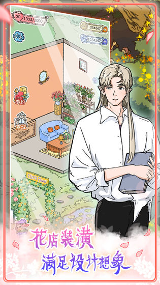 种植不同种类的花卉,完成花店订单,收穫金币和爱心。