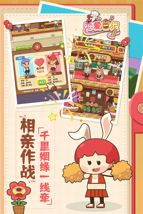 恋爱日记官方版是一款画风可爱的卡通经营游戏,以模拟爱情为主题,玩家化身相亲会所的负责人,开了一家属于自己的店铺,帮助年轻人找到合适的伴侣。在游戏中需要招聘员工,服务每一位客户,将店铺做大做强,是女生喜欢的非常卡通的小游戏。为了让大家都能找到满意的另一半,玩家需要通过建造不同的设施给顾客解疑答惑,从而使他们魅力十足找到心中的他/她,各种精彩的故事情节带来了新颖的体验,感兴趣的朋友可以来下载体验下。
