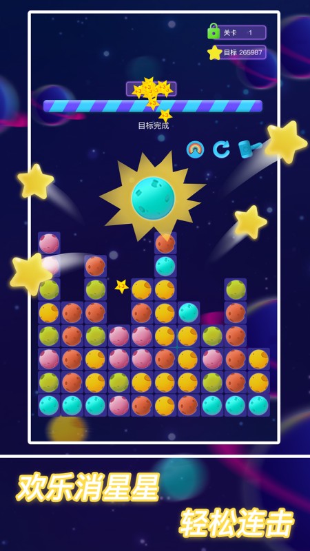 这款游戏设有连击和连续消除系统,可以通过不断消除星星来触发连击,获得更高的分数和奖励,让游戏变得更加有趣和具有挑战性,随时体验各种精彩的消除内容,轻松完成各种考验和对决。