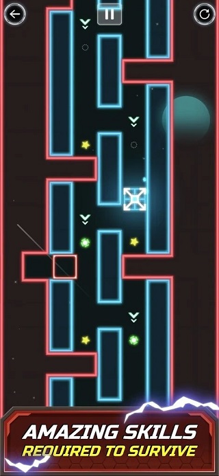 方块跳跃也叫Astrogon,这是一款由Kosmoon Studio厂商发行的创意太空街机游戏,该游戏以简单的几何图形,搭配鲜艳的色彩,只需几秒钟便可带给玩家无穷乐趣,每次就是这么简单的色彩、图形搭配,却有种科幻机甲视觉风。同时目前游戏内提供了两种玩法模式,分别是单人游戏模式和创作模式,在单人游戏模式下,玩家可挑战来自官方制作的各级关卡。而在方块跳跃的创作模式中,玩家可实现自我关卡的编辑创作,汇聚您的智慧结晶,创造出一个个令人满意的创意关卡,依次发布,与世界玩家交流。另外,关于这款游戏的操作也非常简单,只不过内含的部分规则有些许的难度,操作体验中,玩家只需点击左右分屏两边的屏幕即可完成跳跃,简单易学,非常轻松,将此作为玩家消遣娱乐掌机必备,必然是一个不错的选择。