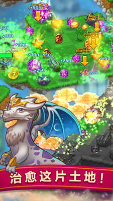 很久很久以前,在一个遥远的世界里,有一片土地失去了所有的生命,唯一的希望就是龙的神奇治愈力量能永远地治愈这片土地。将龙蛋、树木、珍宝、星星、神奇花朵、甚至是龙本身进行融合,你将得到强大的巨龙。将女神的雕像进行合成来解锁关卡并完成任务!收集赏金和各种物品来帮助你的巨龙成长,保护你的家园免受恶魔的攻击。