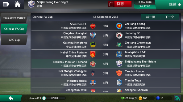 游戏中我们可与其他的球队参加友谊赛,或参加联赛