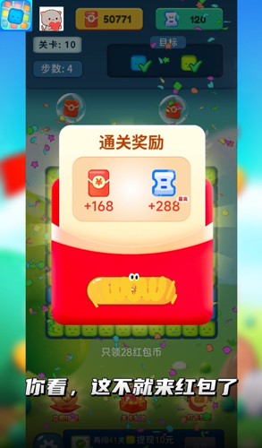 轻松乐消消红包版是一款极其丰富的休闲闯关小游戏!轻松乐消消红包版游戏采用精致的卡通风展开,玩法操作易上手,适合不同年龄段的玩家;游戏为各位伙伴们提供了诸多丰富的关卡设定,每关关卡都带有不同的玩法任务,只要成功完成任务即可获得丰富的奖励,而且还有一大批丰厚道具可供使用,这样能更好的通关成功;本游戏非常适合在闲暇时刻游玩,喜欢的伙伴们不要错过,请快快点击下载体验吧!