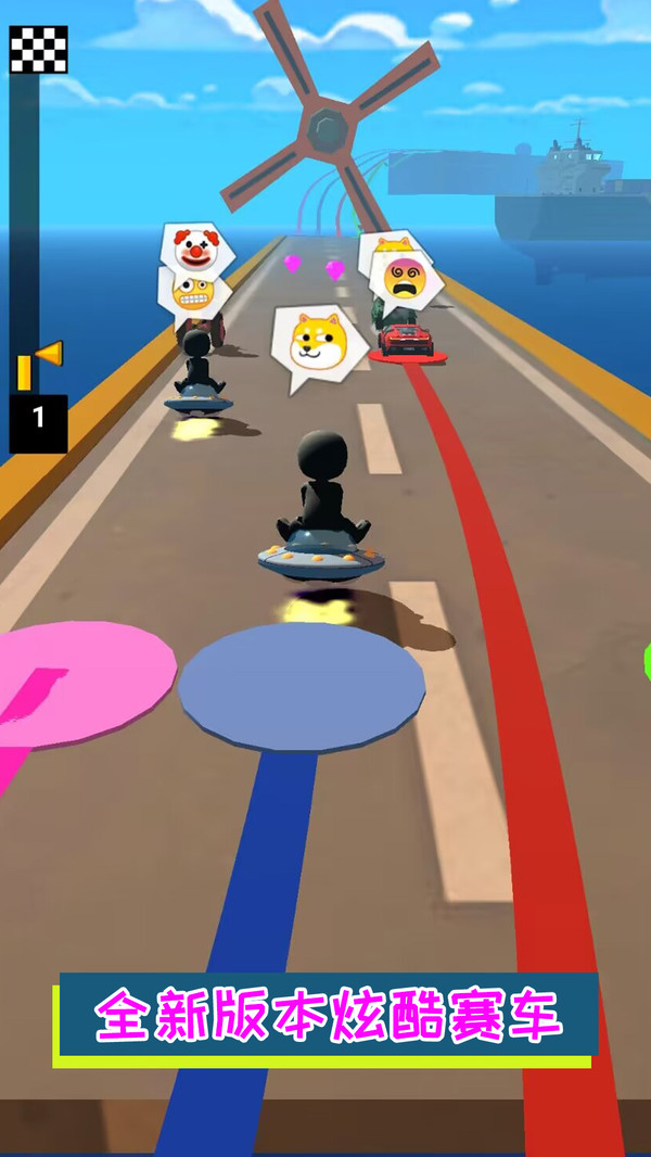 3、在比赛的过程中还需要注意时刻会出现的障碍物,躲避障碍物才能够顺利来到终点。