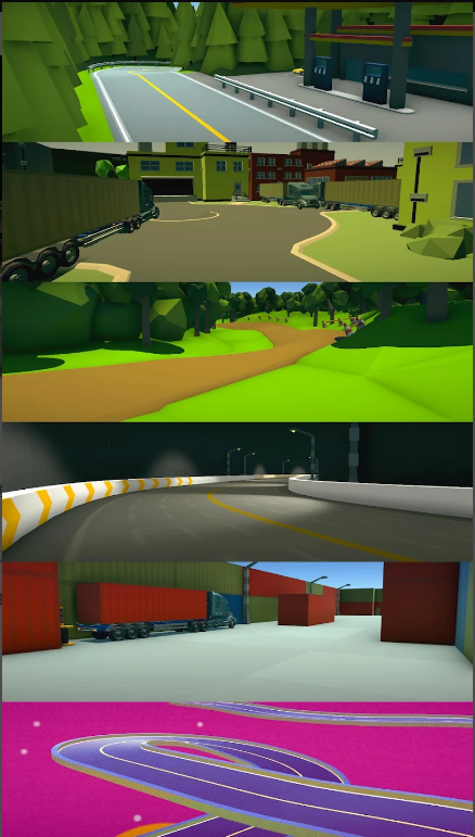 玩家可以挑选赛车,然后挑选赛道去体验模拟驾驶,赛道是随机生成的六中场景。