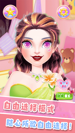 1、进入游戏后,分别有随机模式和选择模式供玩家选择,玩家可以自由选择为一位好看的公主化妆;