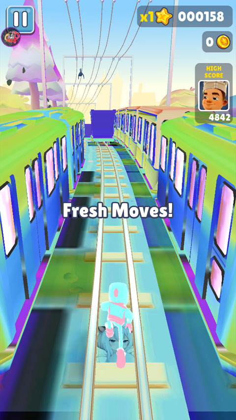 技巧2:没有跳跃鞋从轨道上火车,在有路障的情况下,掌握好跳起的落点,在路障的上方下拉,使角色落在路障上可以再次跳起,然后就可以跳上火车顶了,相信大家都遇到过有个收集物品在火车上,却拿不到而错过的尴尬,掌握了这个技巧,问题迎刃而解。