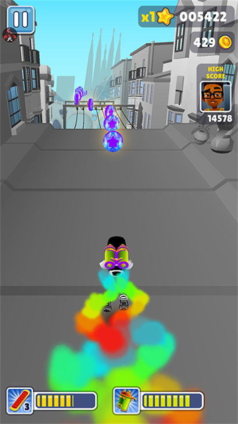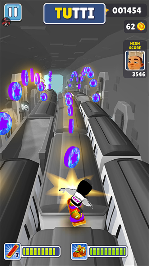 2、丰富多样地铁跑酷游戏过程里收集到的金币和道具,玩家可以通过这些购买或者兑换新的角色、滑板和道具,比如穿着绿皮的害虫、脑袋可以当篮球的机器人、戴着萌系兔子面具的怪大叔、目光呆滞的僵尸大姐等等。