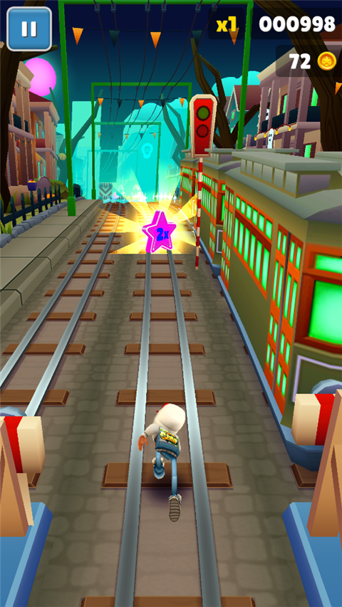 2、游戏中加入任务系统让游戏不会单调,多种的道具和角色也让人耳目一新,虽然有内购系统但不购买完全可以玩得很好。它几乎没有试图从其他无尽跑酷游的的模式中脱离出来,但很难不欣赏地铁跑酷对这个游戏赛道的贡献;