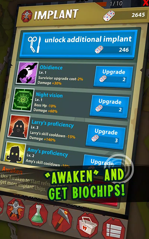 1、首先在游戏中玩家们要注意正确的去将那些道具全部都收集起来,并且在那些僵尸出现了之后我们要注意正确的去将那些敌人消灭掉,并且获得更多的生物酶来升级我们的角色获得更强的攻击力。
