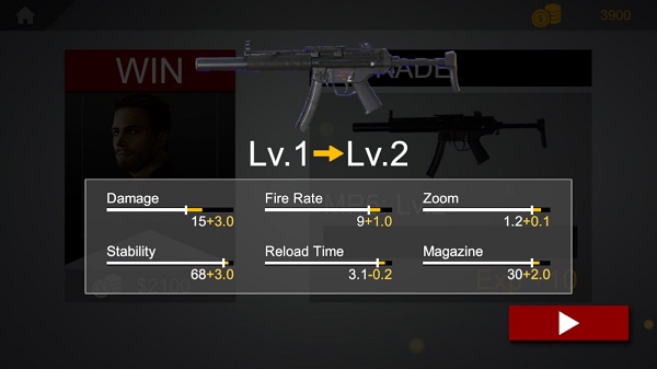 4、返回主界面,在“SHOP”里可以购买其他武器,武器的升级可通过关卡挑战累积经验值进行升级。