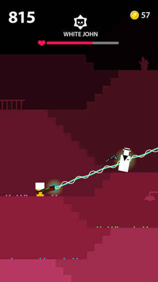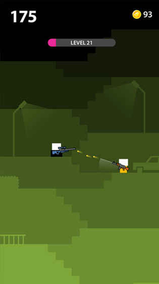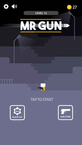 神枪手先生(Mr Gun)是一款十分简单的2D像素射击类型游戏,游戏当中玩家需要不断消灭敌人登上新台阶,玩家需要调整好射击角度,消灭掉敌人。记住,你只有一次机会,一旦失败,对方会一枪打死你,除非你有防弹衣(反正小编我是没有)。不同武器有不同的设计方法,像乌兹(UIZ),他还能打出两条弹道,其次,攻击敌人的头是有额外金额的,毕竟赚钱方式那么少,只能依靠打爆敌人的狗头来赚取这么一点点的钱。