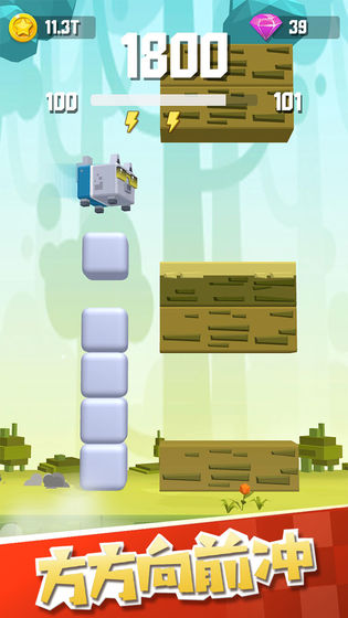 其次是游戏的主要玩法“向前冲”,在关卡制模式的推动下,玩家所经历的每一关都要反应迅速,操作方式很简单,就是轻触屏幕使小动物生出“方方”,将角色升到合适的高度、穿越层层阻碍。