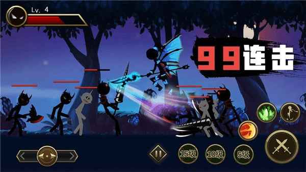 1、炫酷简约的黑暗火柴人画风,细致入微的精细化操作控制;