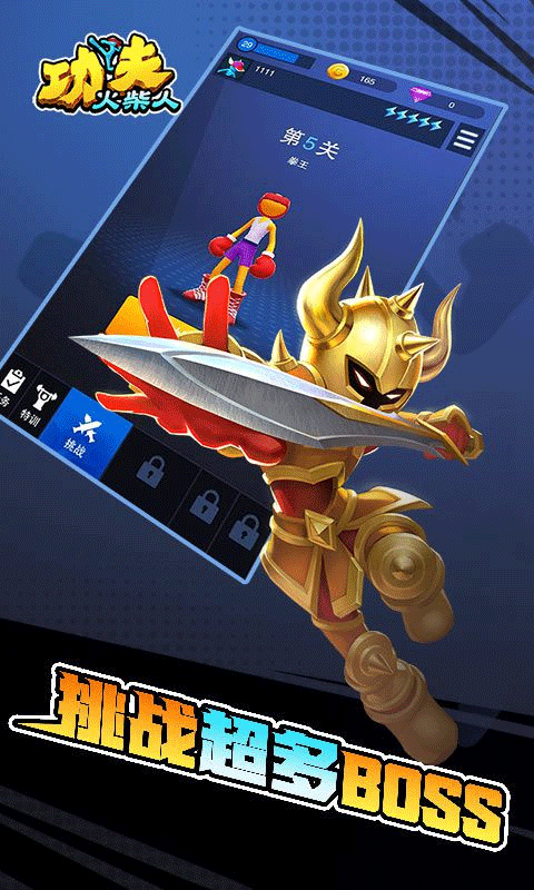 生命不息,战斗不止,功夫火柴人火爆来袭!功夫火柴人是一款以火柴人为主题的休闲挑战手机游戏,游戏设有海量关卡,你作为火柴人扮演的忍者,需要操控角色,上下移动,释放技能大招战斗,击败敌人,获取奖励。你可以在游戏中训练自己的角色成为功夫之王,有上百个火柴人BOSS等你来挑战哦!游戏操作简单,只需要单身狗的手速外加一点点的技巧就可以称霸柴圈啦~快来和小伙伴们比一比,看看谁的手速更快!功夫更高吧!