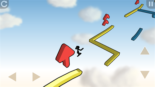 3、你要操作角色在高空中进行刺激的跑酷,时时刻刻感受命悬一线的紧张刺激快感,这部作品中的你将要和火柴人一起挑战和冒险,整个作品的玩法简单且容易上手,拥有相对应的按钮,玩家可以自由的完成挑战。