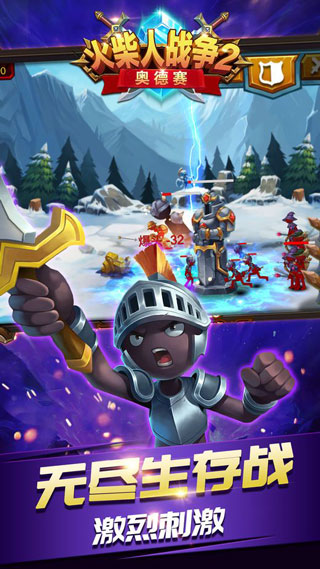 火柴人战争2奥德赛官方正版是一款策略塔防游戏,游戏中共有三种模式可供玩家选择,每一种模式的挑战都充满趣味性,虽然游戏的题材是采用了简约的火柴人系列,但较之前的火柴人游戏,这款游戏的画面更加绚丽多彩,玩法更加有趣,每个清晰分明的兵种特色都非常便于玩家的操控,在这里玩家需利用矿工的资源采集来训练出一支强大的火柴人军团,灵活搭配每个兵种的特色属性,将会让你战往不胜,待摧毁敌人的雕像即可赢得比赛的胜利。此外,游戏中还配有华丽的全屏道具协助系统以及强大的军械系统,其中道具是需要消耗钻石购买的哦,而军械库则在成功完成对敌的作战便能获取一个技能点,在军械库中利用技能点,进一步提升兵种的威力,会让你的挑战变得更为轻松哦,喜欢的朋友就赶快前来下载体验吧!