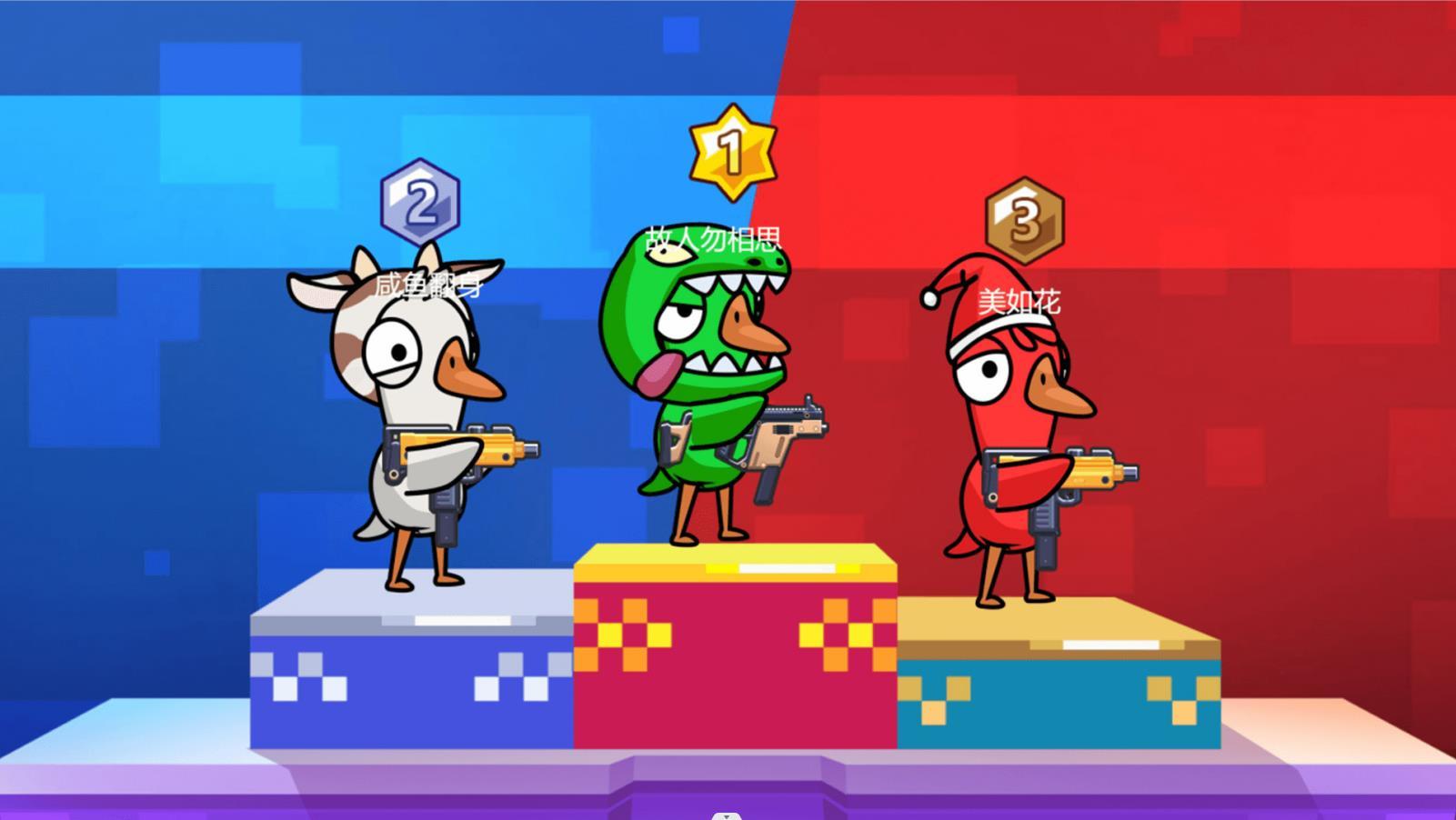 1. 鸭子们面对面看谁能赢,而这两支队伍四处打闹,随机获取身份;