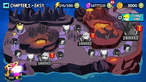 在游戏中,玩家可以根据自己喜欢的角色来进行进行闯关,不断地战胜对手,通过关卡可以获得相应的金币钻石,金币钻石可以用来升级英雄等级,购买高等级的角色,提高玩家实力。