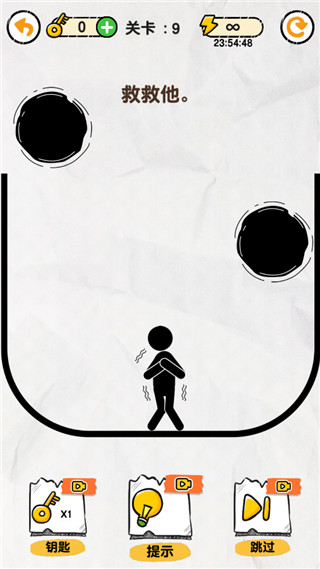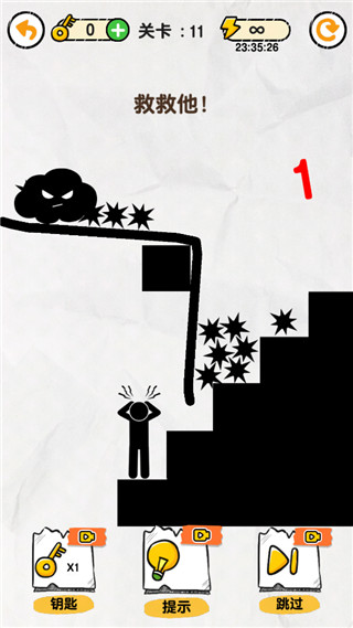 4、想方设法拯救火柴人,帮助火柴人顺利逃离出困境吧。