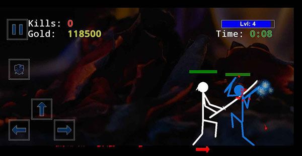 1、火柴人物理战场最新版的游戏操作异常的简单,只有屏幕左下角的移动摇杆。在每次格斗中都会是我们的火柴人对另一个火柴人。