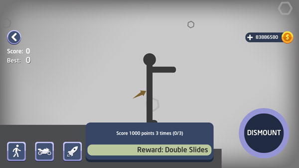 3、通过长按左下角DISMOUNT控制火柴人行动;