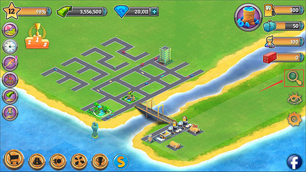 9、最后一个是右侧的放大镜图标,点击此图标可以对地图进行放大或者缩小,玩家也可以通过向两个方向滑动手指来实现这一目的。