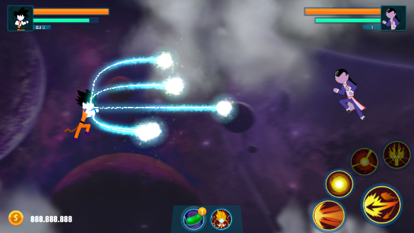 4、对战中除了基本的技能与攻击外,我们还可使用特殊道具激活超级赛亚人状态,可大幅提升角色属性,更加的容易获得胜利