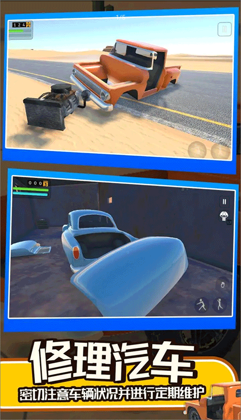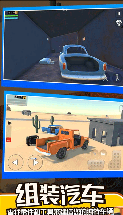 长途旅行2游戏手机版是一款充满冒险元素的模拟驾驶类手游,在这款游戏中玩家不仅可以驾驶汽车自由的遨游在沙漠道路上,还可以体验组装车辆的玩法,游戏中的每辆车都将经过你的组装形成,感受组装的乐趣。同时在行驶的路途中还会有各种散落的物资可以拾取,如各种汽车、汽车零件、汽油、食物等等,都是你在游戏中生存下去的所需要必备物品。