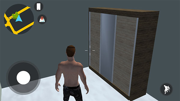1、下载安装好低速汽车模拟器,进入游戏,首先通过使用左边的轮盘控制角色移动,右边控制角色跳跃,滑动手机屏幕控制视角。
