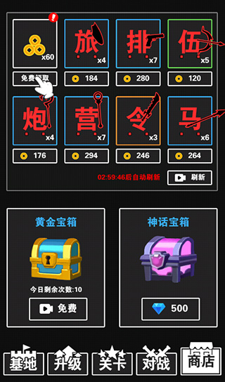 现代汉字是指楷化后的汉字正楷字形,包括繁体字和简体字,而现代汉字即从甲骨文、金文、大篆、小篆,至隶书、草书、楷书、行书等演变而来,而这款汉字攻防战免广告版也跟汉字有关,这是一款精心设计的文字策略战争手游,在游戏中我们可以看见各种各样的汉字,这些汉字的功能作用就跟它们的意思一样,如在游戏中的兵、卒,就是一名小兵,汉字盾的作用提供盾牌,此外游戏中的这些汉字还有不同的形象,如汉字兵手持一把刀,汉字卒手拿一把剑,汉字盾手举一个盾牌等等,非常的有意思。