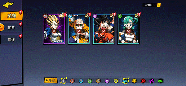 龙珠Z超级赛亚人手游是一款以龙珠为主题的热血策略竞技对战类游戏。这款游戏中还原了动漫中的众多人物形象,且每个人物都自带专属特技让你体验到动漫中原滋原味的打斗效果,同时各种熟悉的超级必杀技和华丽的特效也能让玩家感受到绝妙的战斗刺激。而在游戏中玩家需要做的就是收集这些英雄,并安排英雄前往战场与敌人进行战斗员。英雄分为技、体、速、意、知、超这几种特系,每个体系在战斗中呈现的效果不同,玩家需要合理的搭配它们让其在战斗时能够发挥最强大的战斗力