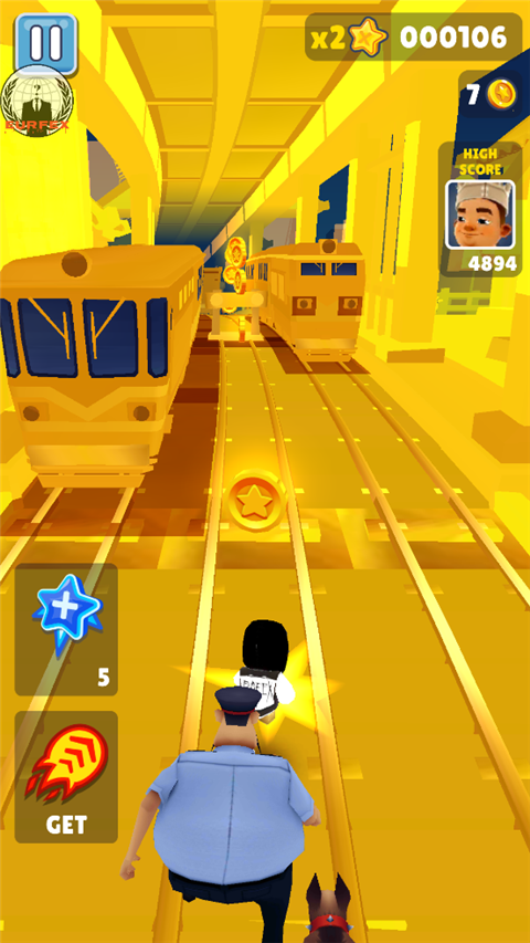 2、在列车上跑视野更开阔,往往比在地面上更安全,并且金币会指引你在列车之间跳跃。