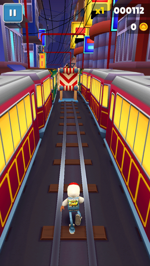 3、被保安抓住不会损失东西地铁跑酷操作方法,但是单局游戏就结束了。你把保安逗在后面时,你去撞迎面而来的火车。保安和狗也会被撞,你有时看保安发现他的那条狗好像是被他拎起来似的;