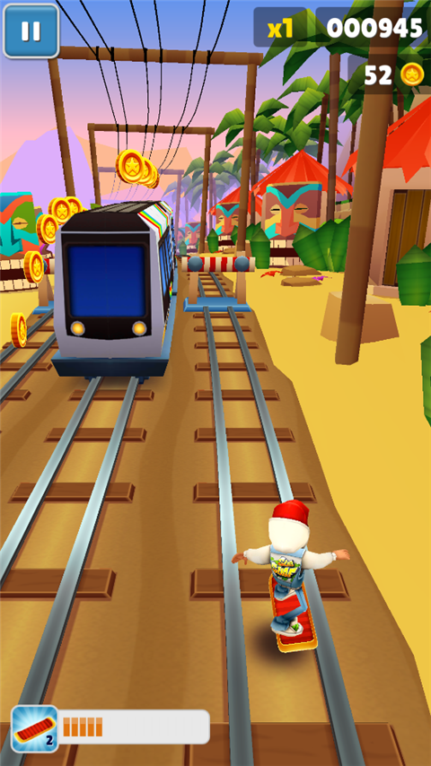 1、游戏性:Subway Surfers的游戏性非常简单直观,玩家只需通过滑动手势控制角色的移动,躲避障碍物和收集道具。这种简单的操作使得游戏易于上手,适合各个年龄段的玩家。同时,游戏采用无尽跑酷的模式,让玩家能够不断挑战自己,争取创造更高的分数和跑得更远的距离。