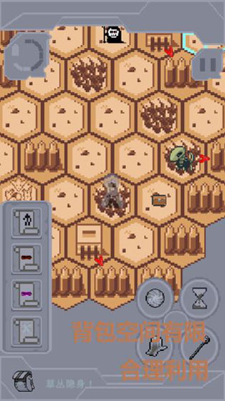 游戏时尽量不要惊动怪物和巡塔,尽量悄无声息击杀或着绕过敌人,击杀敌人会掉落道具,而开箱有几率是陷阱,并且善用道具之间的克制关系和取舍。玩家可以空手击怪物,击杀的怪物可以推动,死亡的怪物也能推动,死亡的怪物会引起其他怪物进入警觉。