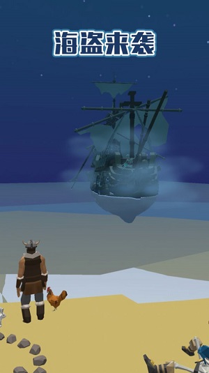 探索大海,鱼和火,获得更多的食物,也打击海盗。