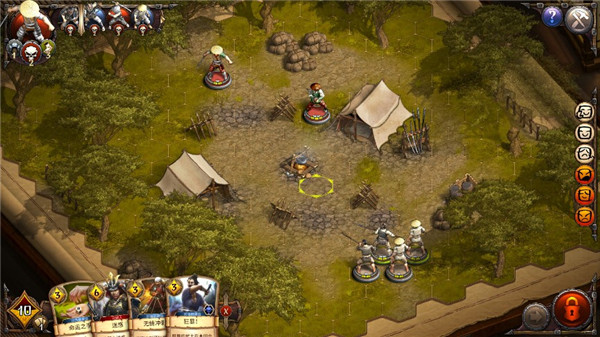 除了移动和攻击之外,战斗中还要注意能量和卡牌技能的使用,比如说增加骰子判定,影响敌人的攻击,回复血量,玩家需要根据自己和敌方的攻击回合来合理的使用,另外如果敌我双方是相邻的单位,那么想要移动到其他的地方会触发敌方攻击。