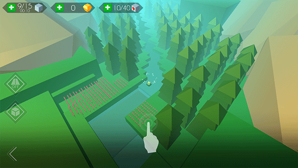 2、在游戏的过程中玩家还可以点击左侧的off方块,开启自动引导线增强道具来帮助你更好的通关。