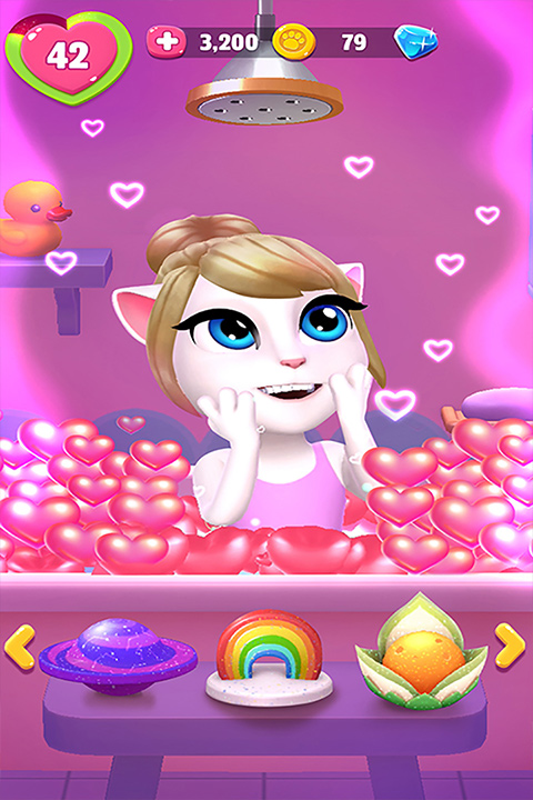 玩了这么久之后,安吉拉也需要休息和放松一下!她有时会饿、需要小睡一下或洗个泡泡浴,你一定要多加留意。进行飞机旅行来寻找新物品并带回家,最重要的是,好好照顾你的朋友!
